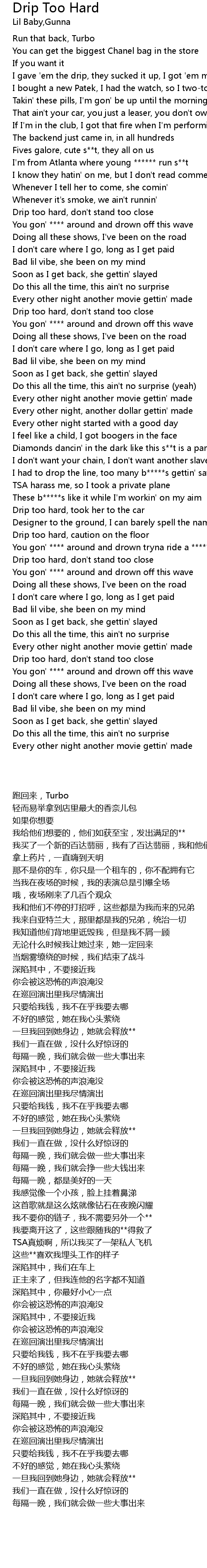 | [00:53.74] | You gon' **** around and drown off this wave |