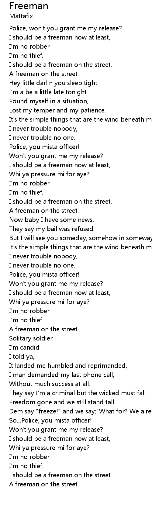 Dem say "freeze!" and we say;"What for? We already have respect for da law" |