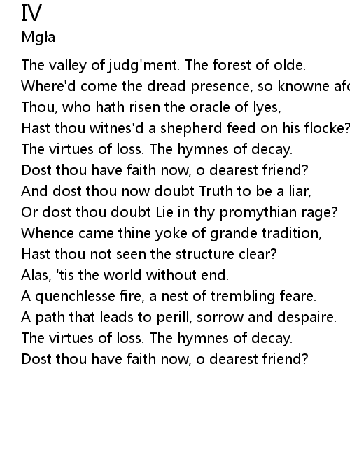 | [00:58.989] | The valley of judg'ment. The forest of olde. |