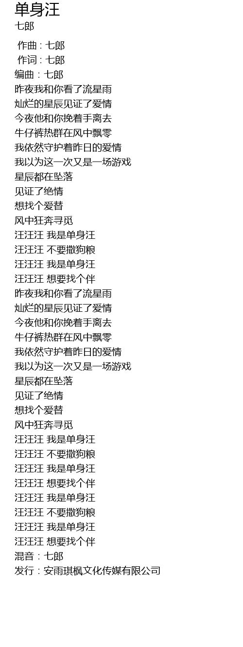 | [02:32.30] | 汪汪汪 我是单身汪 |