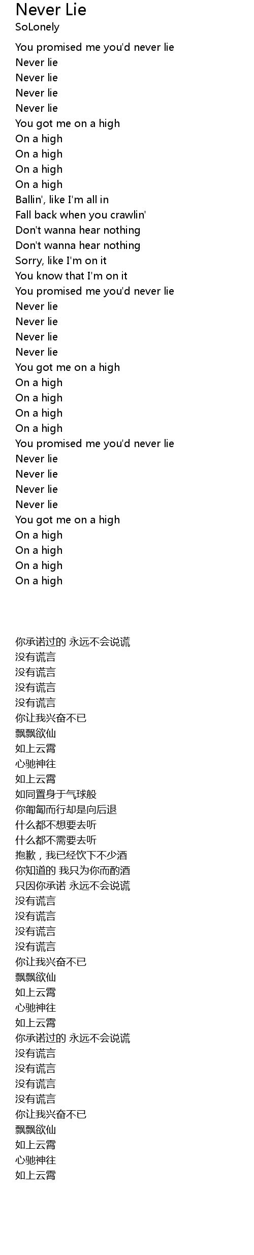 | [00:19.50] | Never lie |