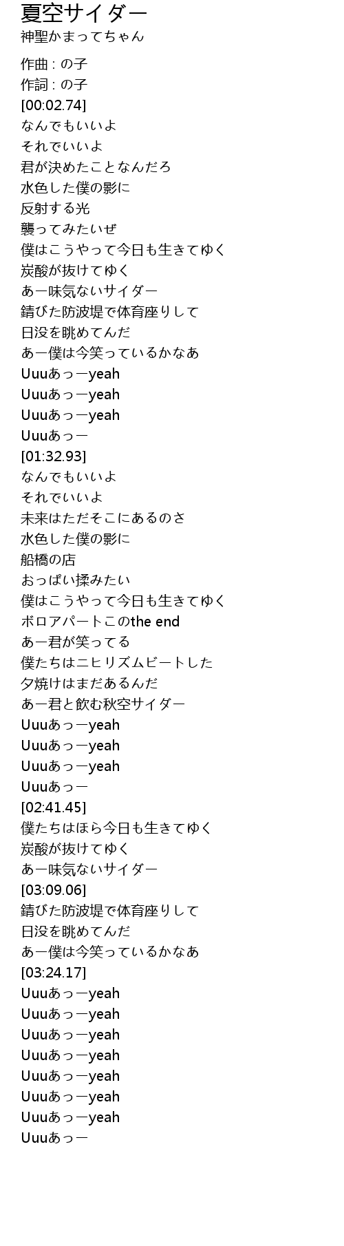 | [02:24.83] | あー君と飲む秋空サイダー |