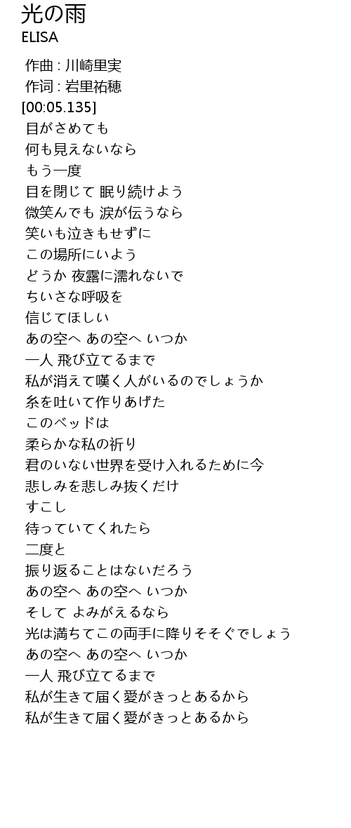 | [04:16.265] | 私が生きて届く愛がきっとあるから |