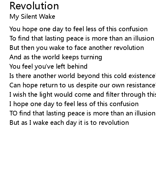But as I wake each day it is to revolution |