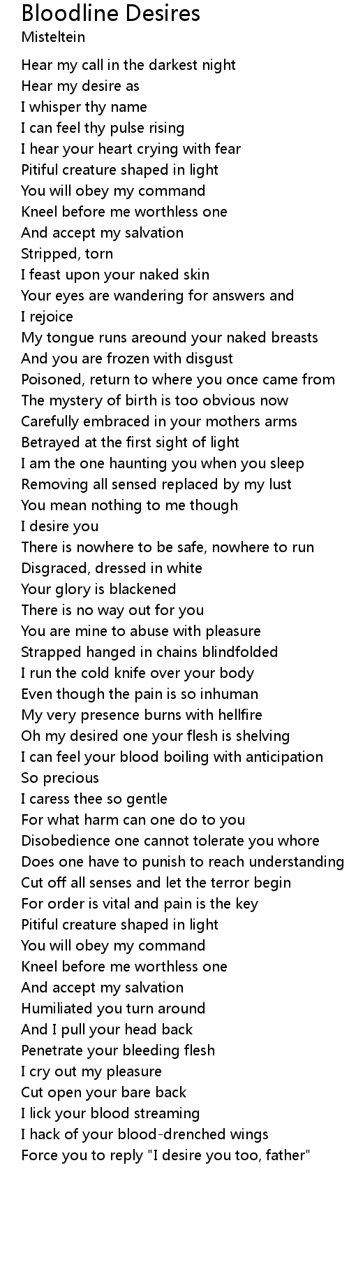 Force you to reply "I desire you too, father" |