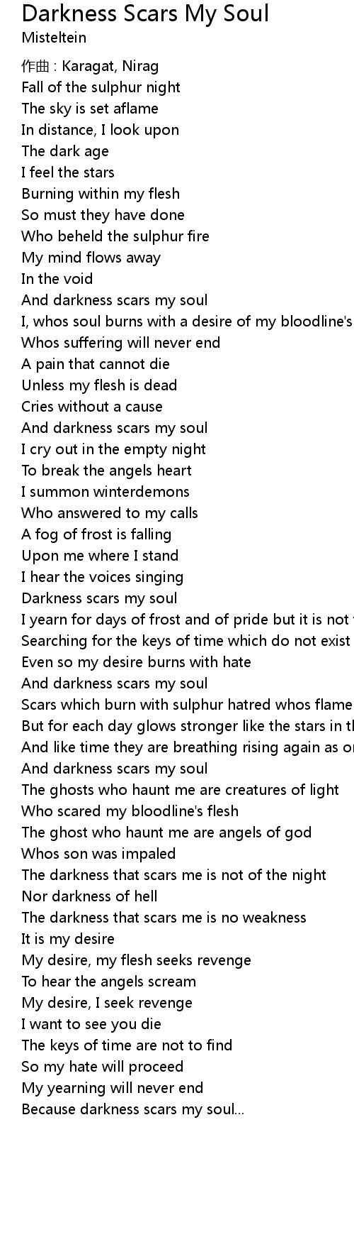 | Scars which burn with sulphur hatred whos flame never dies | |