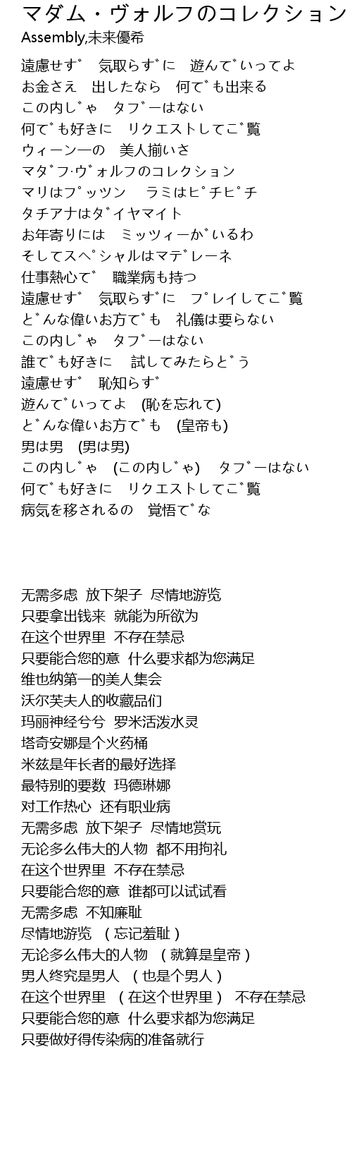 | [00:51.061] | マダフ·ヴォルフのコレクション |