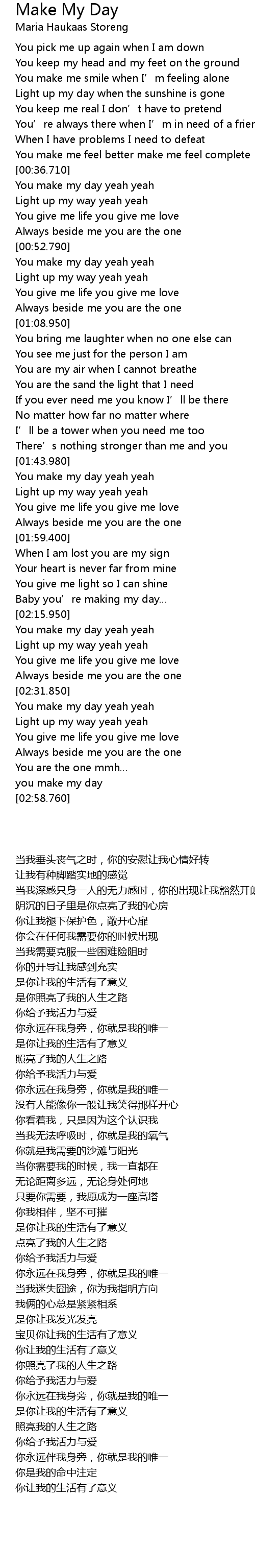 | [00:18.370] | Light up my day when the sunshine is gone |