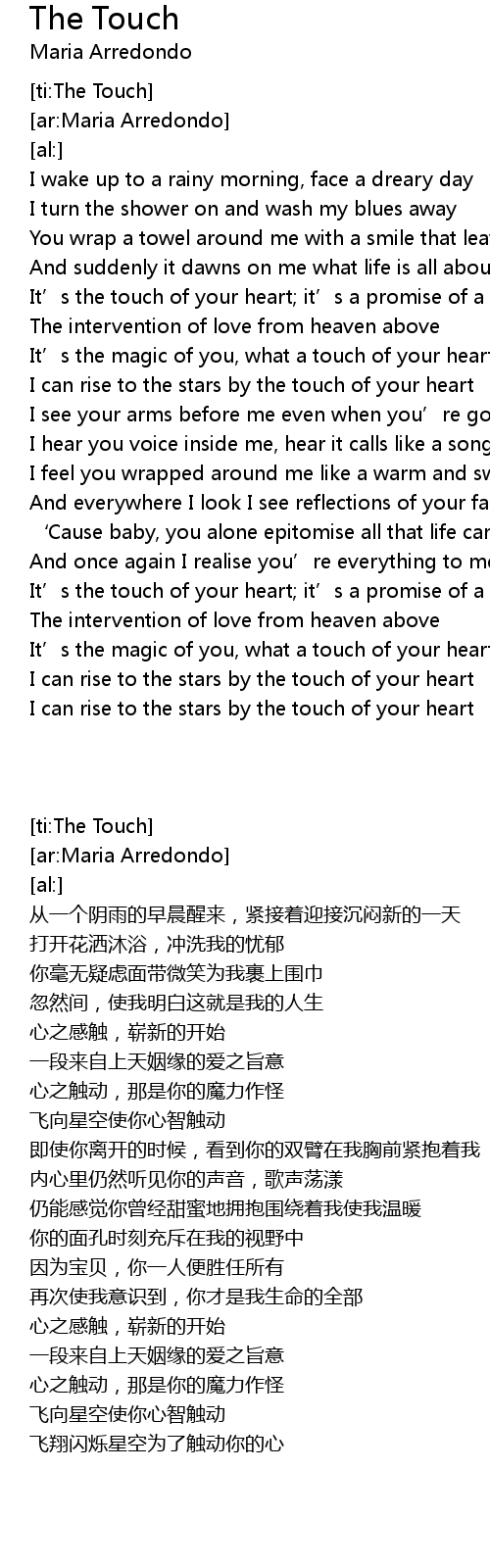 | [00:40.80] | It' s the touch of your heart it' s a promise of a brand new start |