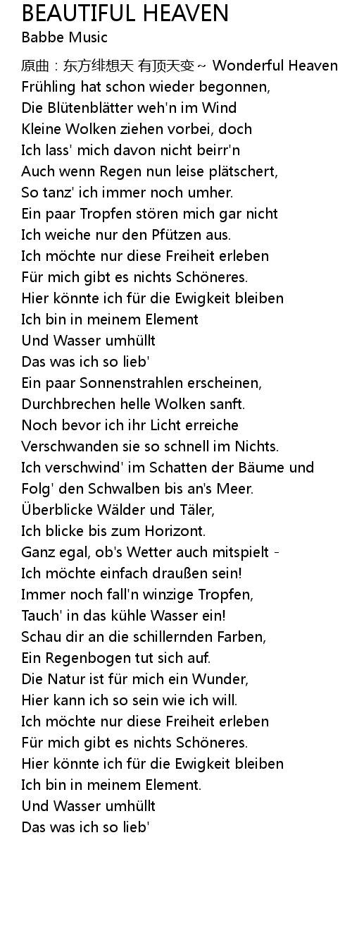 | [00:00.97] | yuán qǔ: dōng fāng fēi xiǎng tiān yǒu dǐng tiān biàn Wonderful Heaven |