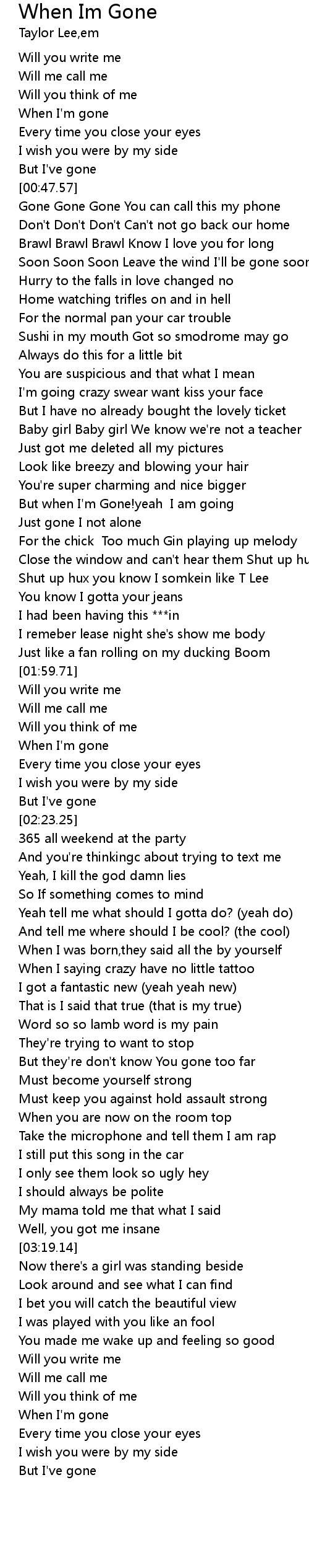 But when I'm Gone!yeah I am going |