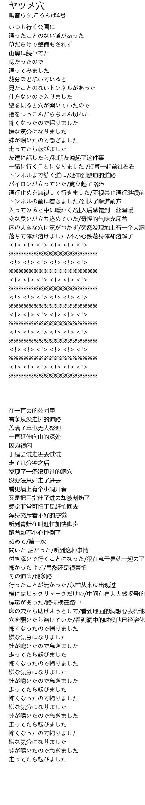 | [01:54.500] | 落ちて体が溶けました/不小心跌落身体却溶解了 |