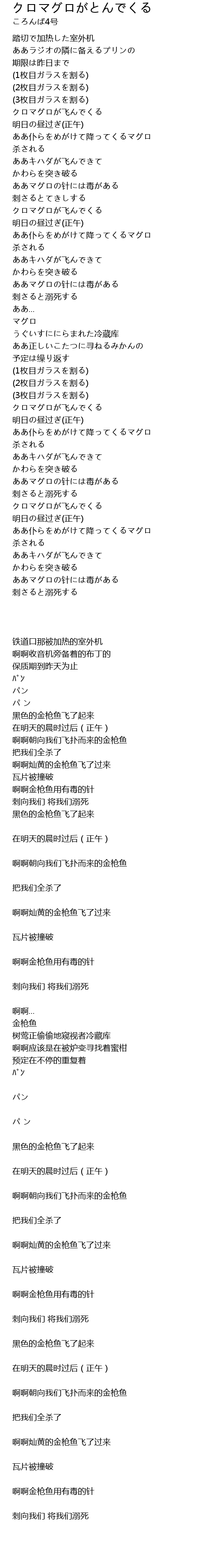 | [01:53.160] | ああ仆らをめがけて降ってくるマグロ |