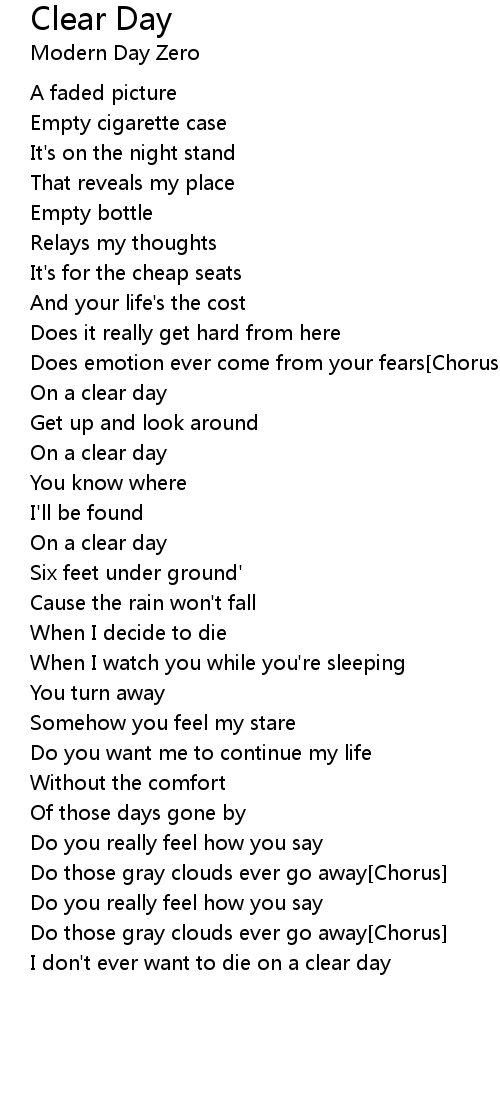 I don't ever want to die on a clear day |