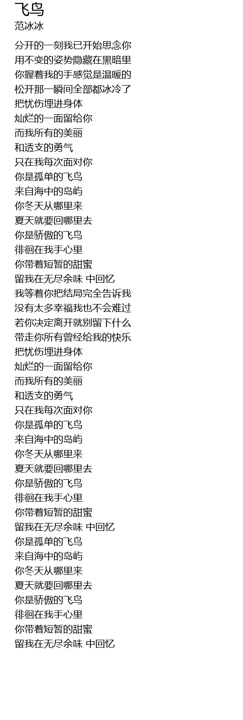 | [03:28.400] | 你是骄傲的飞鸟 |