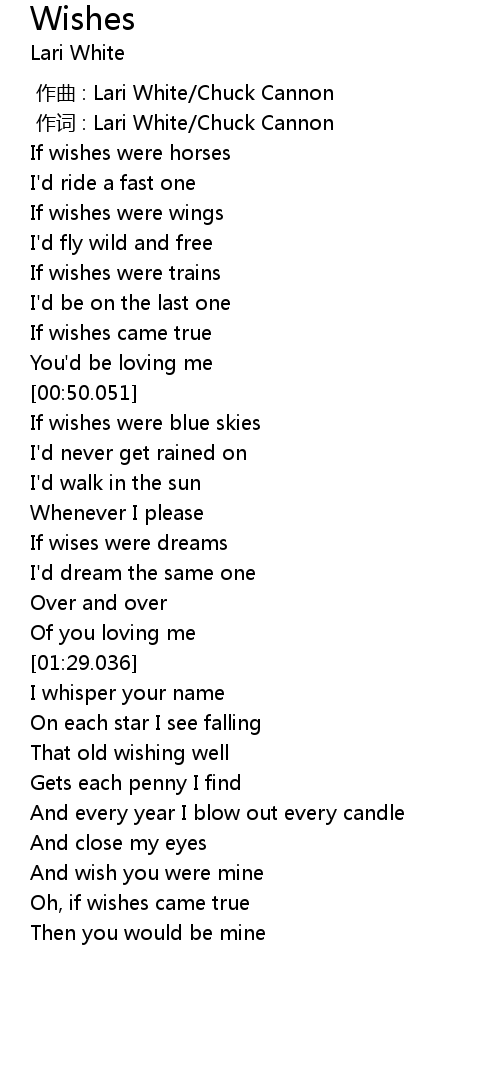 | [00:01.000] | 作词 : Lari White/Chuck Cannon |