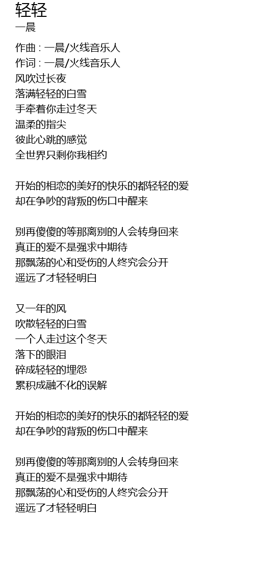 | 作词 : 一晨/火线音乐人 | |