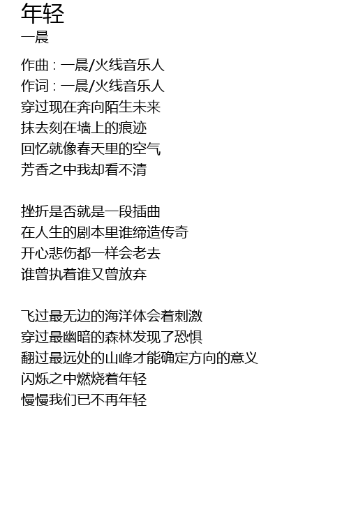 | 作词 : 一晨/火线音乐人 | |