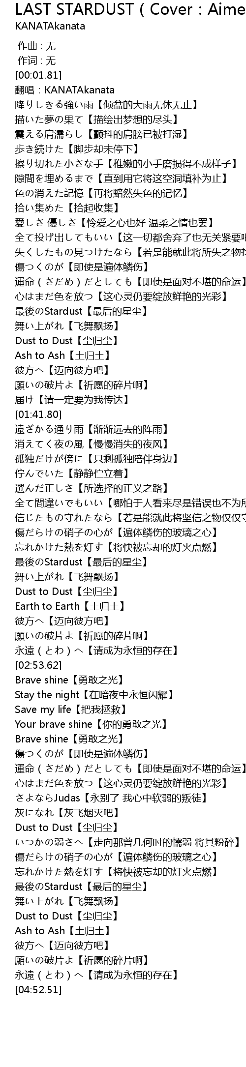 | [04:31.62] | 最後のStardust【最后的星尘】 |