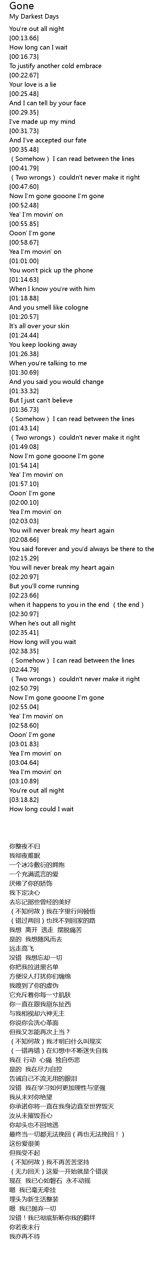 | [00:49.16] | Now I' m gone gooone I' m gone |