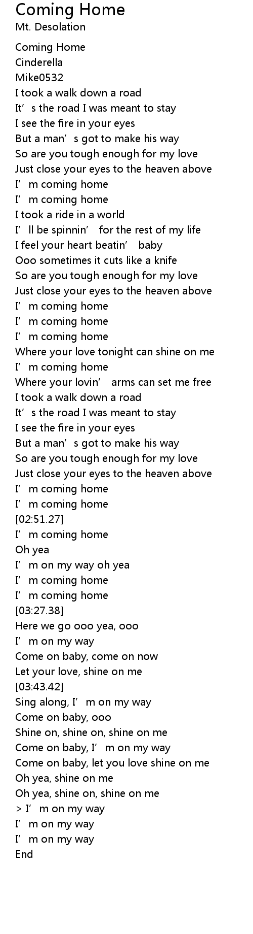 | [00:42.31] | I' m coming home |