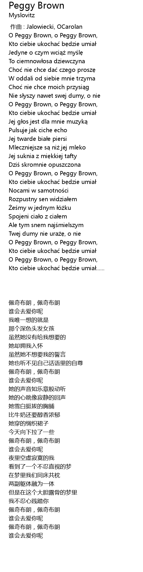 | [00:45.63] | O Peggy Brown, o Peggy Brown, |