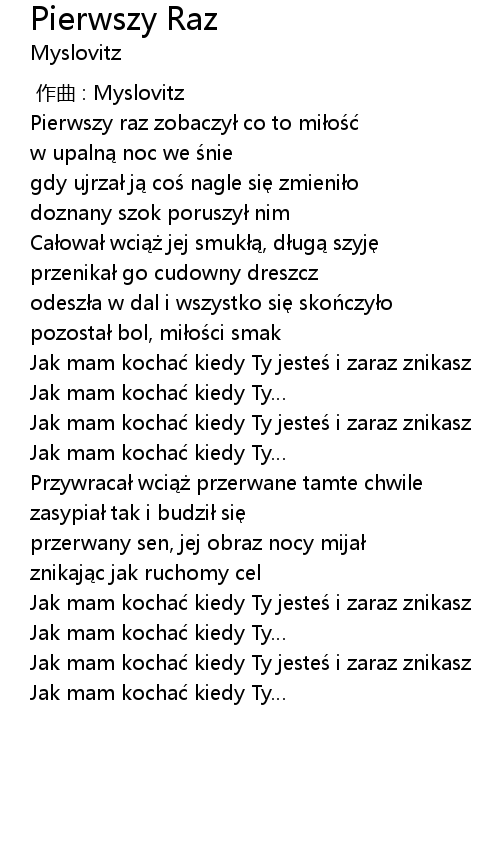 | [00:00.00] | 作曲 : Myslovitz |