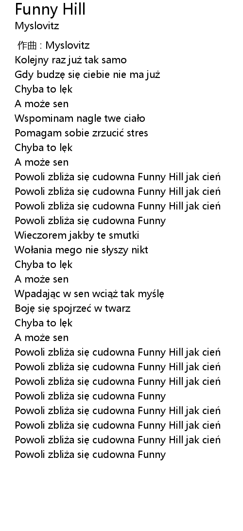 | [01:00.74] | Powoli zbliża się cudowna Funny Hill jak cień |