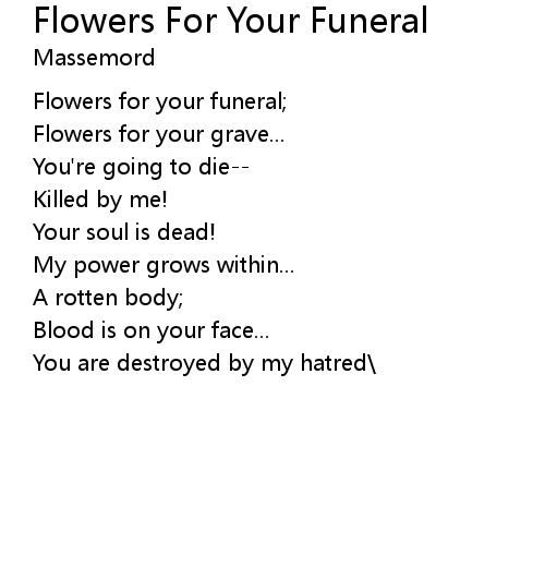 | Flowers for your funeral; | |