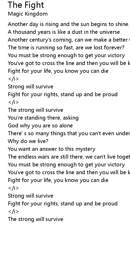 Only the strong will survive in the thick of the fight [Back vocals:]</i> |