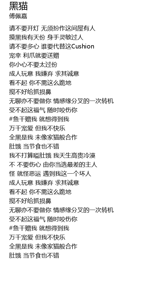 | [02:32.85] | 全黑是我 未像家猫般合作 |