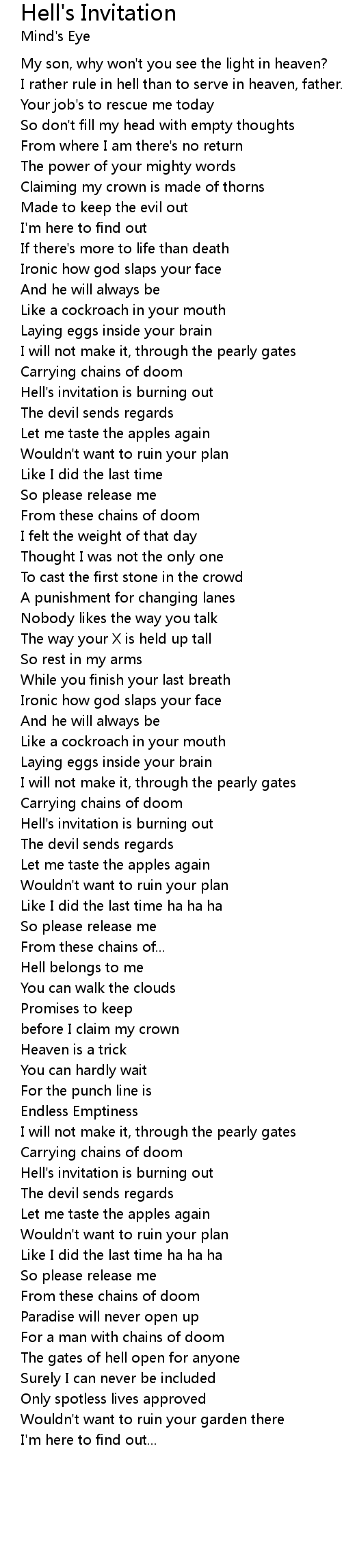 Hell's invitation is burning out |