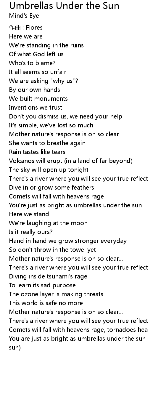| You are just as bright as umbrellas under the sun (open your eyes, here is the sun) |