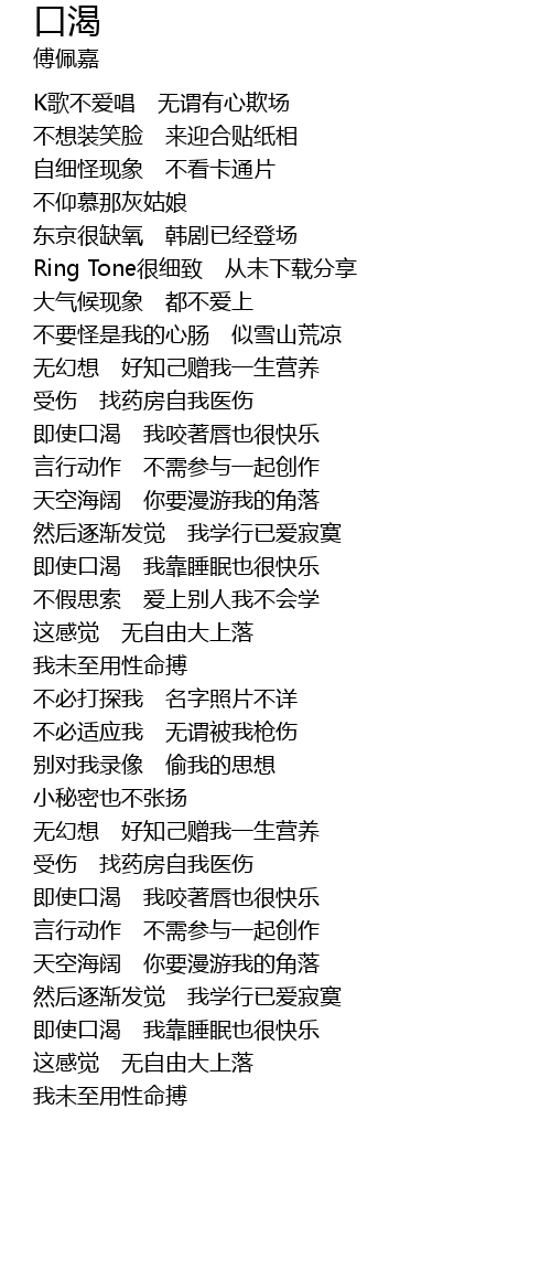 | [02:50.20] | jí shǐ kǒu kě wǒ yǎo zhe chún yě hěn kuài lè |
