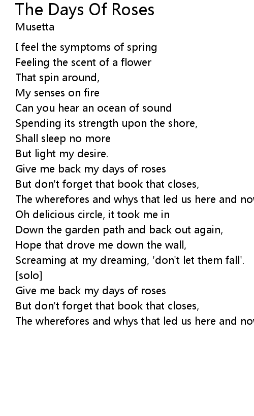 The Days Of Roses Lyrics