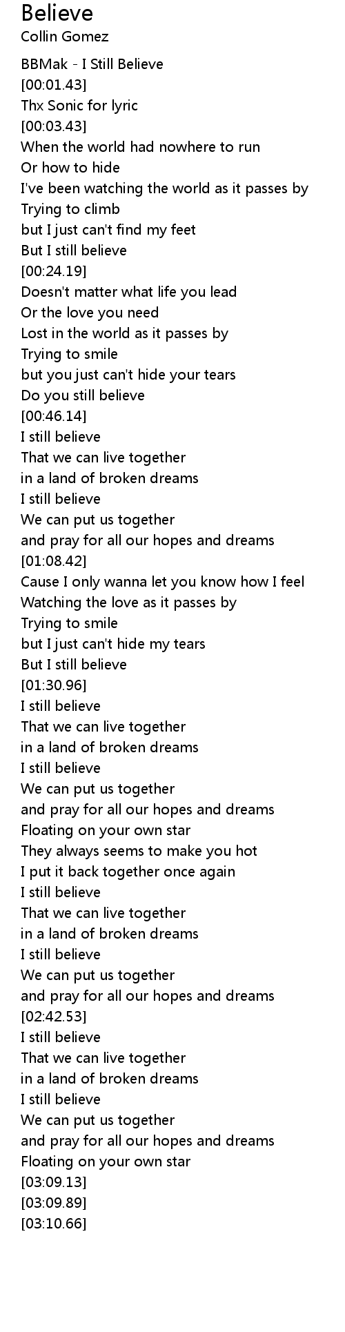 I still believe |