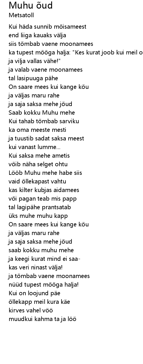 | muudkui kahma ta ja löö |