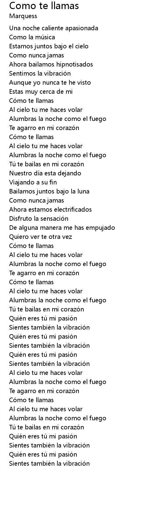 | [01:47.00] | Cómo te llamas |