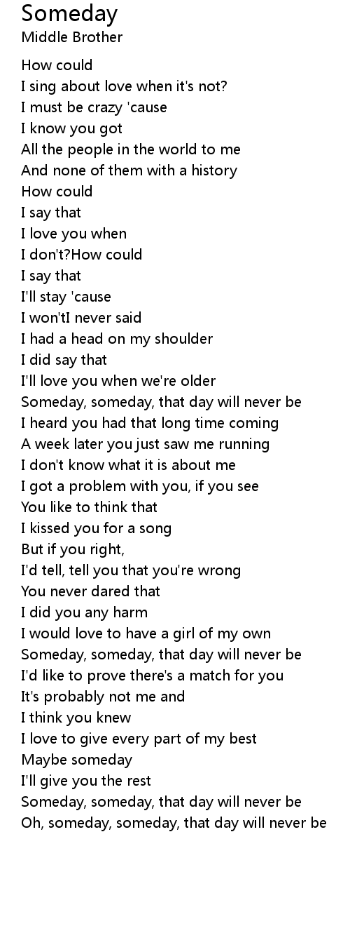 Oh, someday, someday, that day will never be |