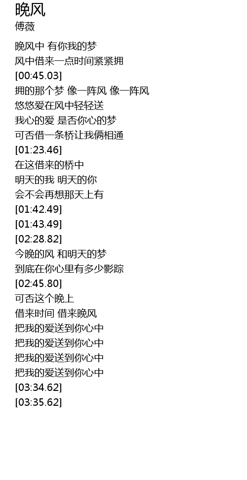 | [00:57.79] | 悠悠爱在风中轻轻送 |