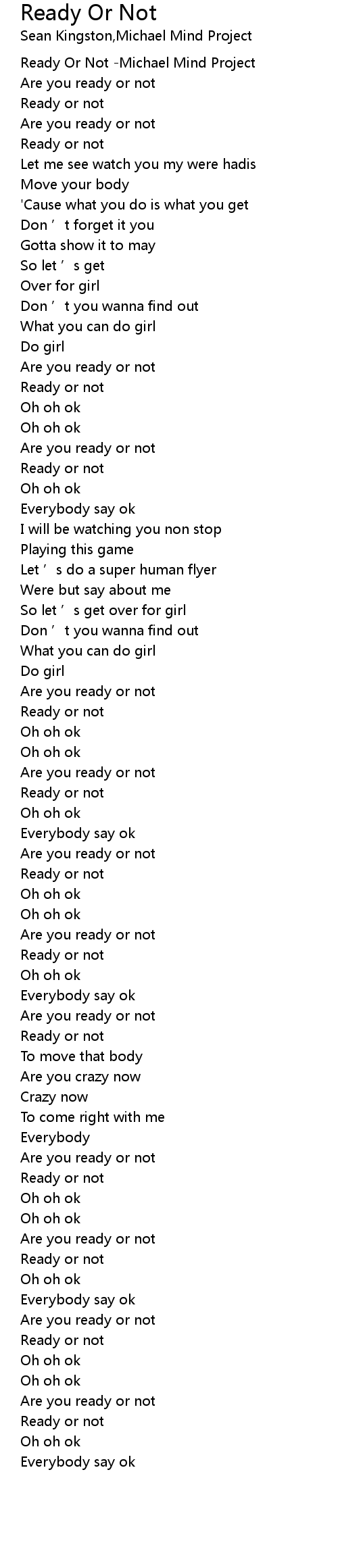 | [00:00.110] | Ready Or Not Michael Mind Project |