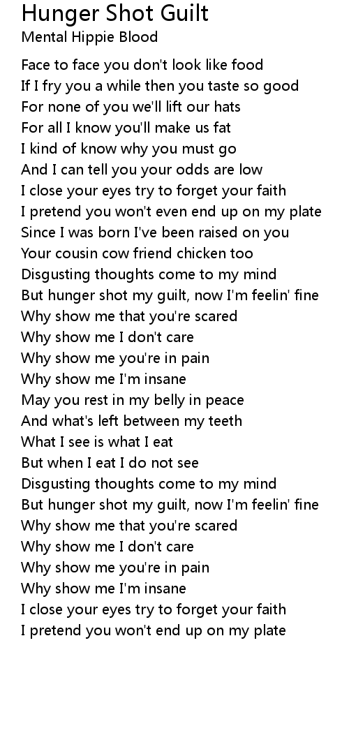 But hunger shot my guilt, now I'm feelin' fine |