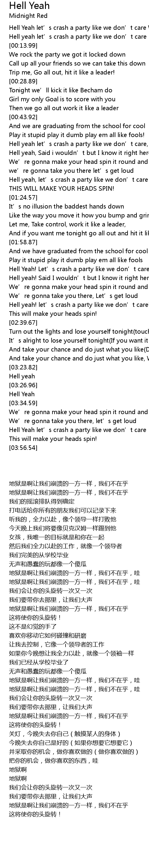 | [00:01.00] | Hell Yeah let’s crash a party like we don’t care Whooa |