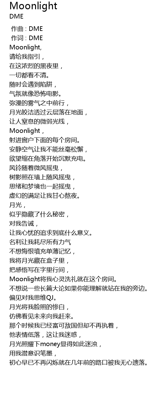 | [01:15.291] | Moonlight jiang wo xin ling xi li jiu zai zhe ge fang jian. |