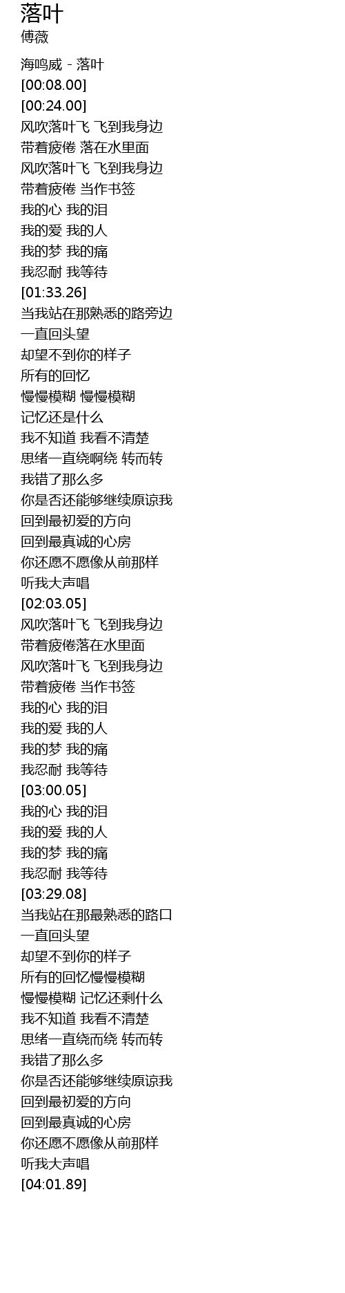 | [00:36.08] | 风吹落叶飞 飞到我身边 |