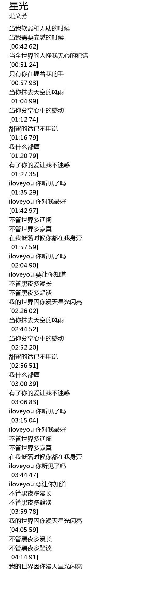 | [04:15.54] | 我的世界因你漫天星光闪亮 |
