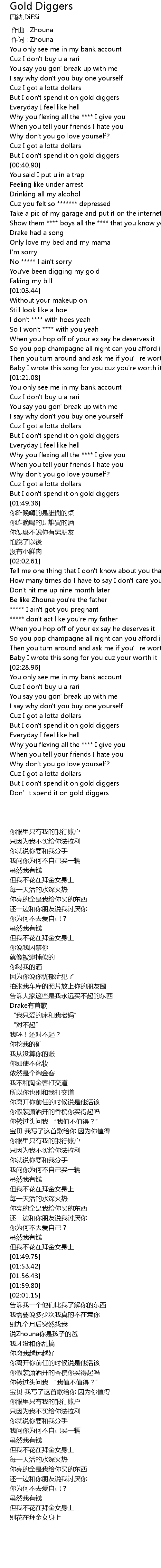 | [01:33.61] | But I don' t spend it on gold diggers |