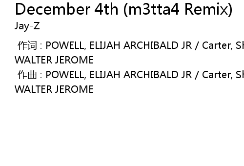 | [00:00.000] | zuò qǔ : POWELL, ELIJAH ARCHIBALD JR Carter, Shawn C. BOYD, WALTER JEROME |