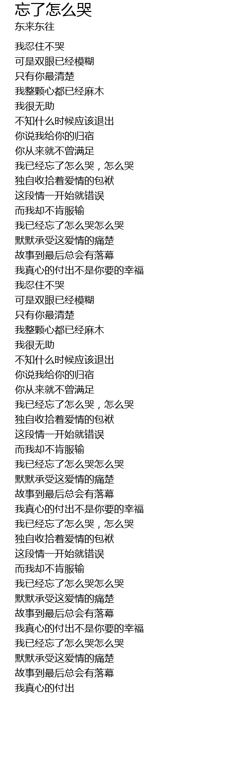 | [01:16.600] | 我已经忘了怎么哭怎么哭 |