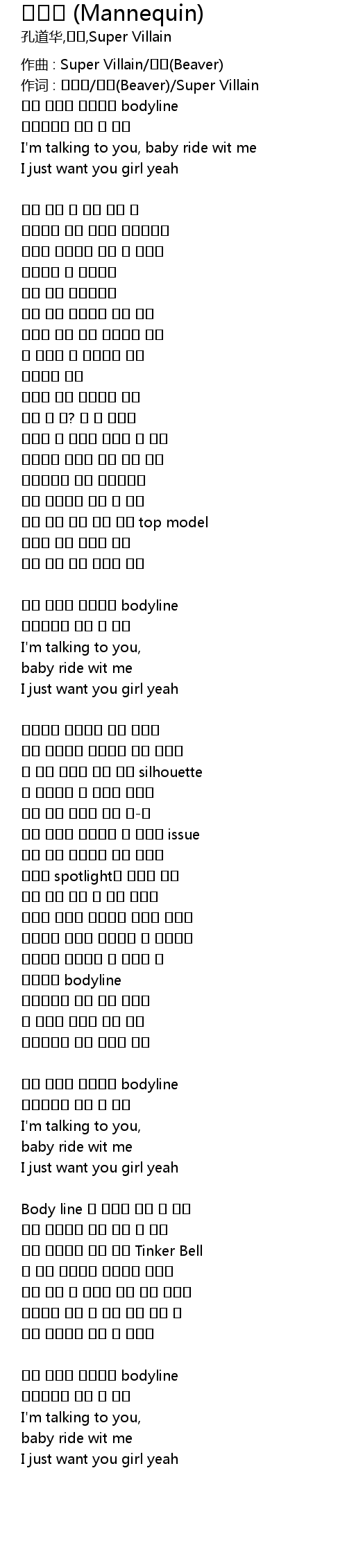 作词 : 공도하/비버(Beaver)/Super Villain |